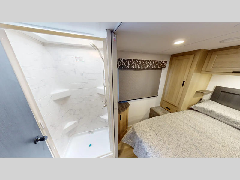Sleeps 6 Length 24 ft 6 in Ext Width 8 ft 5 in Ext Height 11 ft 3 in Hitch Weight 5000 lbs GVWR 12500 lbs Fresh Water Capacity 44 gals Grey Water Capacity 39 gals Black Water Capacity 39 gals Furnace BTU 30000 btu Generator 4.5KW Gas Fuel Type Gasoline Chassis Ford E350 Fuel Capacity 55 gals Wheelbase 158 in Number Of Bunks 1 Available Beds Queen Refrigerator Type 12V Refrigerator Size 10.7 cu ft Convection Cooking Yes Cooktop Burners 3 Shower Size 24" x 32" Number of Awnings 1 Axle Weight Front 5000 lbs Axle Weight Rear 8500 lbs LP Tank Capacity 41 lbs Water Heater Capacity 6 gal Water Heater Type DSI Gas/Electric AC BTU 15000 btu TV Info LR 12V LED TV Awning Info 15' 6" Electric with LED Lights Gross Combined Weight 18000 lbs Shower Type Standard Electrical Service 30 amp Similar Floorplans